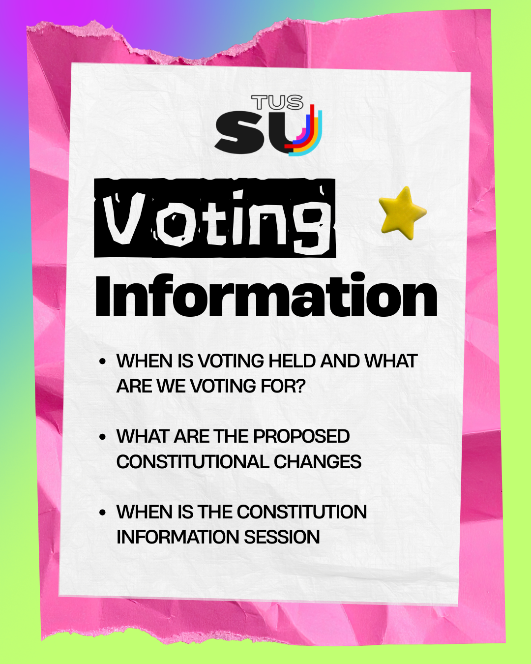 The Mission of the Union is to be the independent representative organisation for students of the TUS (hereinafter referred to as ‘the University’), to act in the best interests of its members, to advance and defend the rights, primarily in relation to their education and welfare as students of the University, and also as active participants in Irish society.